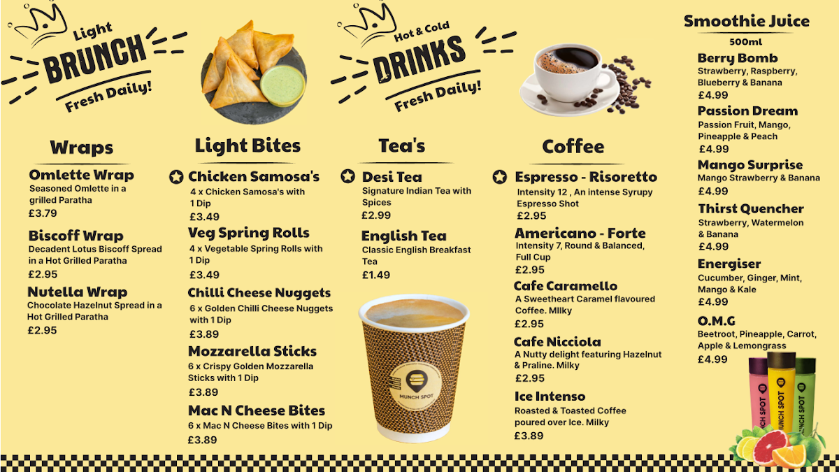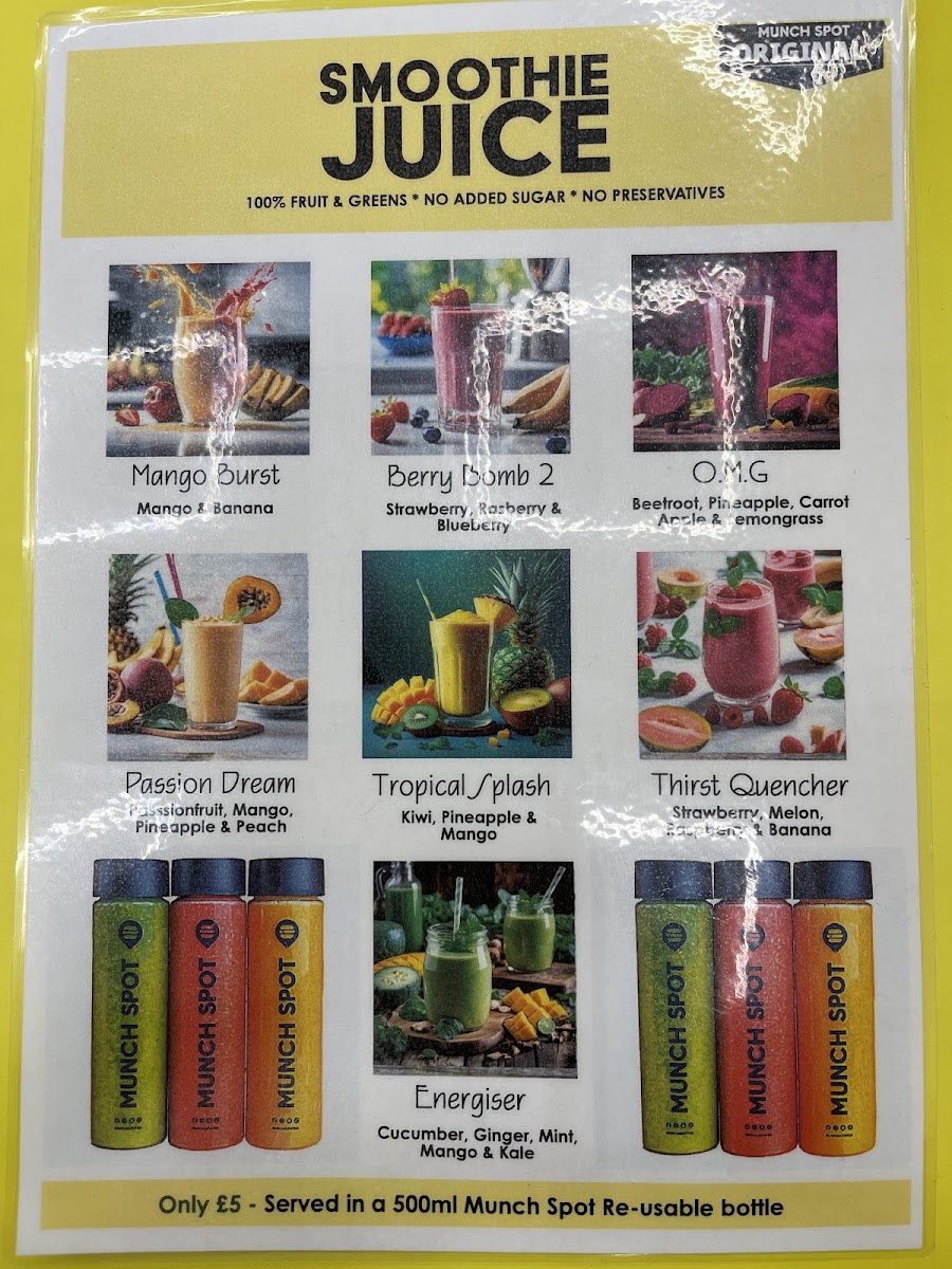 Munch Spot Preston offers a menu that blends the simplicity of a cozy café with the satisfying flavours of casual bites. It’s the kind of place where you can enjoy a well-crafted coffee, refreshing smoothie, or a quick takeout meal without fuss.